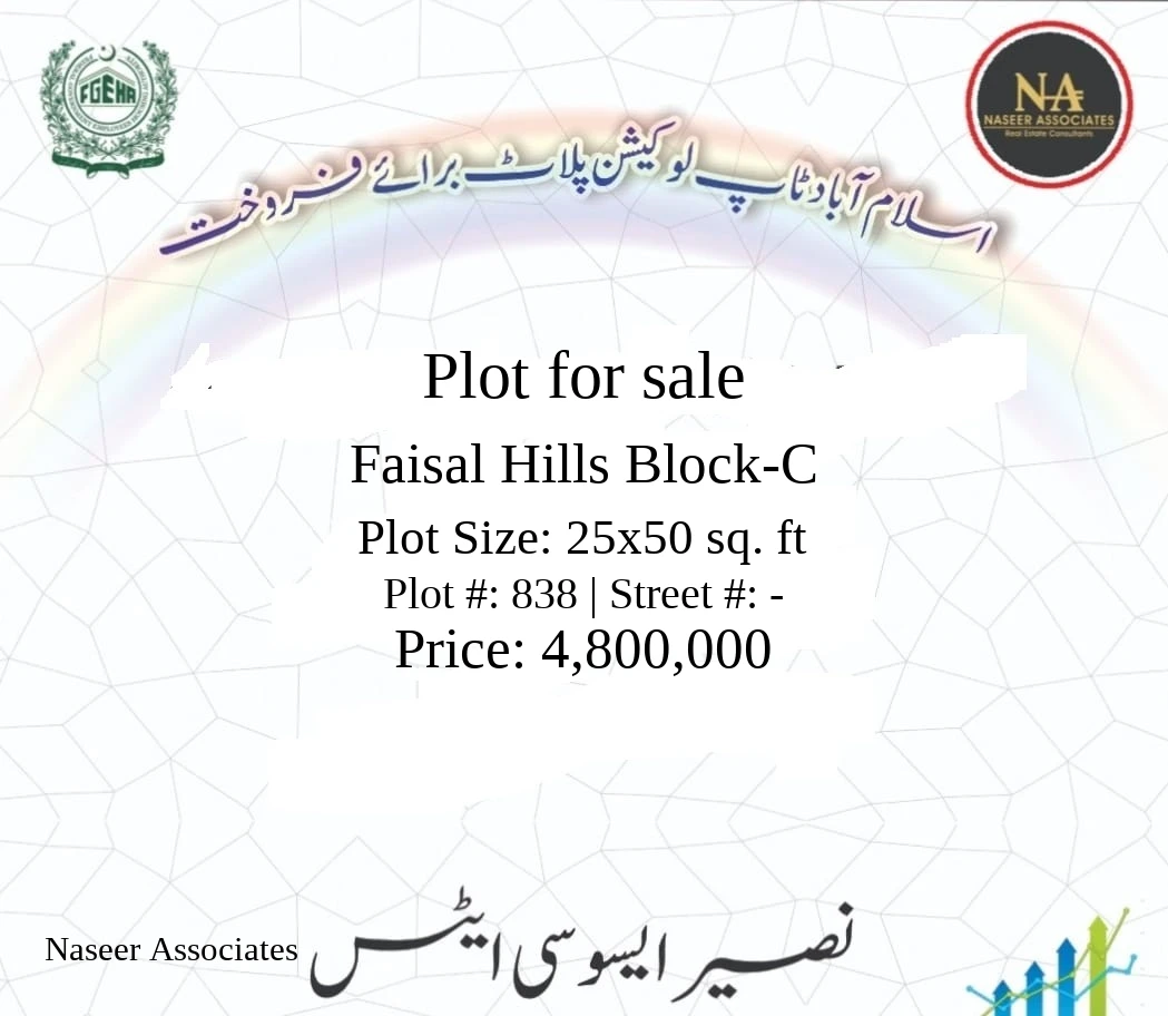 Don't miss out on this incredible investment opportunity in Faisal Hills Block-C. Contact us today to schedule a site visit or to finalize the deal for Plot #838.